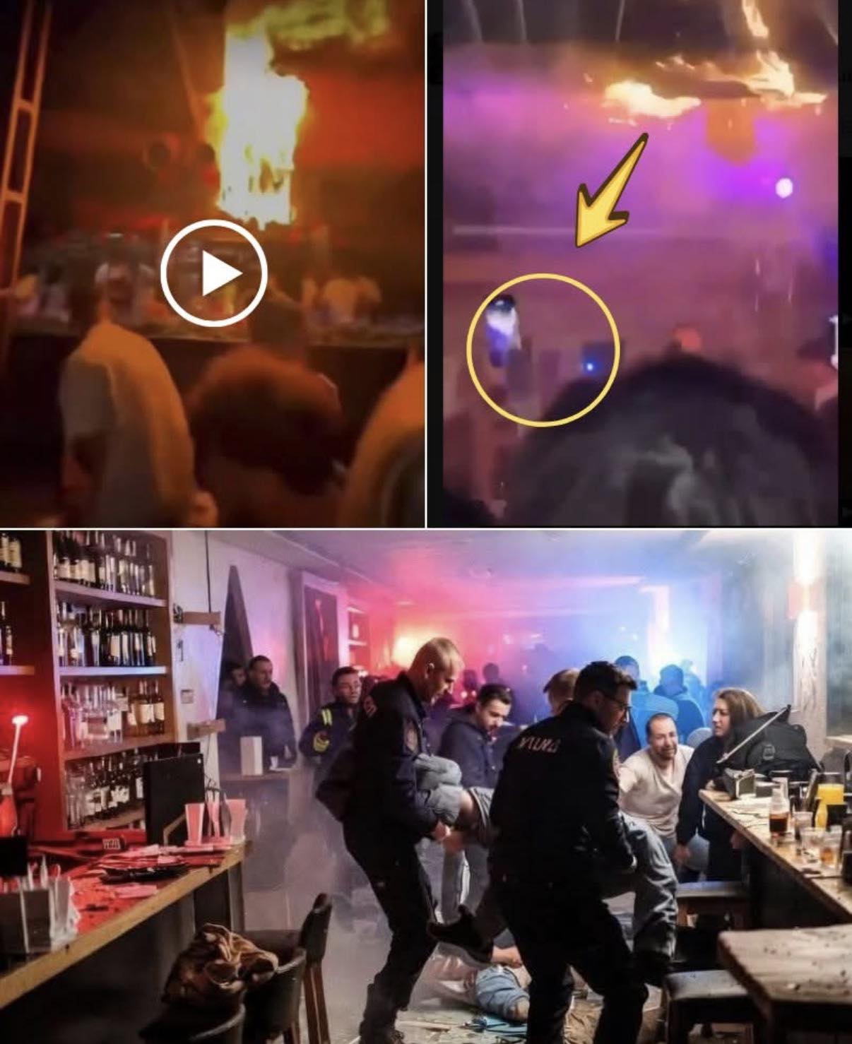 According to police statements and witness accounts corroborated by the released footage, the fire likely began when handheld “fountain” sparklers — pyrotechnic devices attached to champagne bottles — were raised too close to the ceiling. The bar’s interior featured exposed wooden elements and reportedly insulating foam, which fueled the rapid spread once ignited. Initial images show sparks showering upward, igniting the material almost instantly.