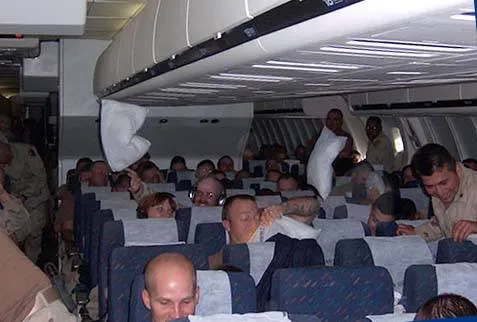 About an hour into the flight, an announcement offered sack lunches for five dollars. When I overheard the soldiers debating whether to buy lunch, all declined, saying it wasn’t worth the price and they’d wait until reaching base.
