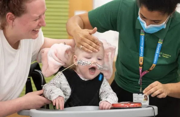 She requires ongoing physiotherapy, occupational therapy, and speech and language therapy to fully regain skills impacted by her illness and brain injury.