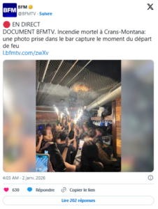 Smoke was first noticed around 1:30 a.m., while the party was still in full swing. Footage—shared in particular by the specialist account “Vincent-Firelife”—shows the very first moments of the blaze, when staff still believed they had the fire under control. According to another post relayed by BFMTV, sparklers attached to champagne bottles may have been the cause of the fire.
